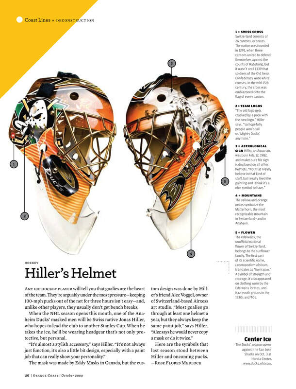 Interviewed NHL goaltender Jonas Hiller to write about the piece of equipment that keeps players safest on the ice.