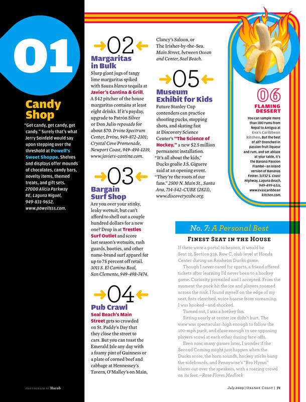 As one of many contributing writers to extensive cover story, wrote a number of pieces highlighting the Best of Orange County.