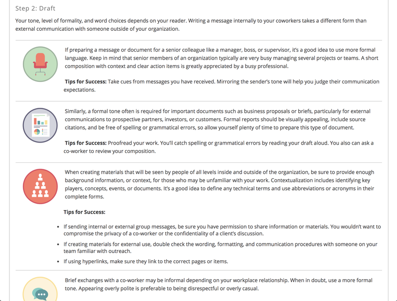 Worked with graphic designer to produce visuals for a professional development course. Created layout for page and used HTML to build it.